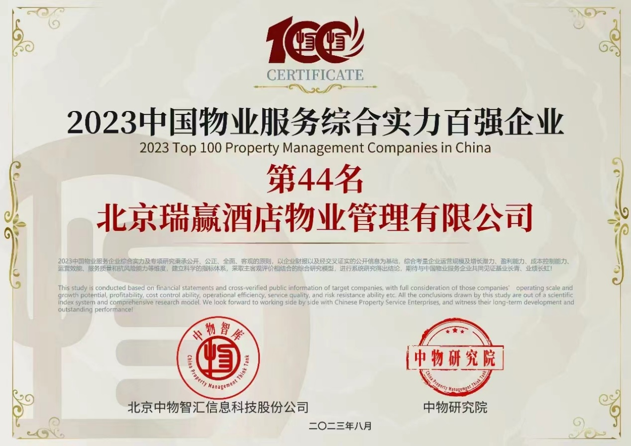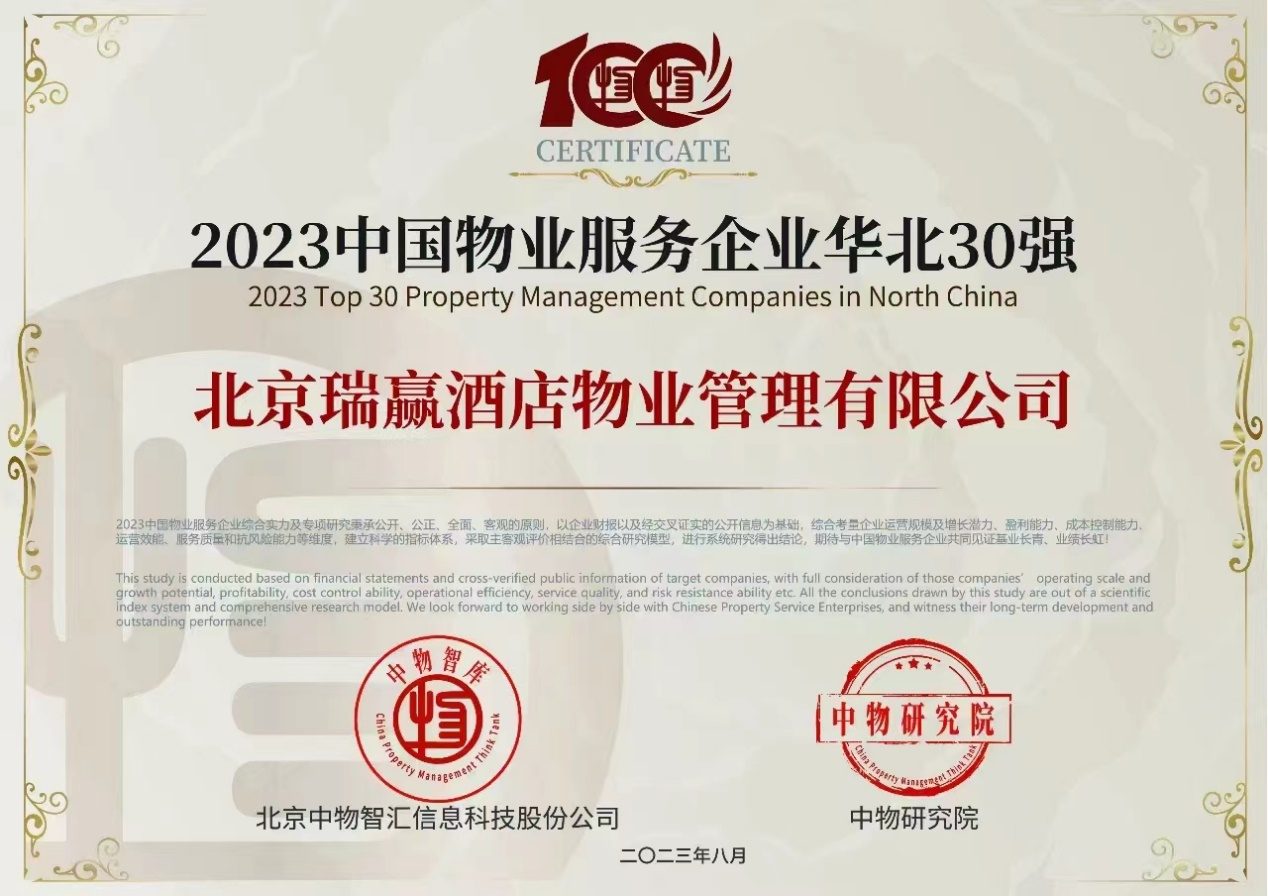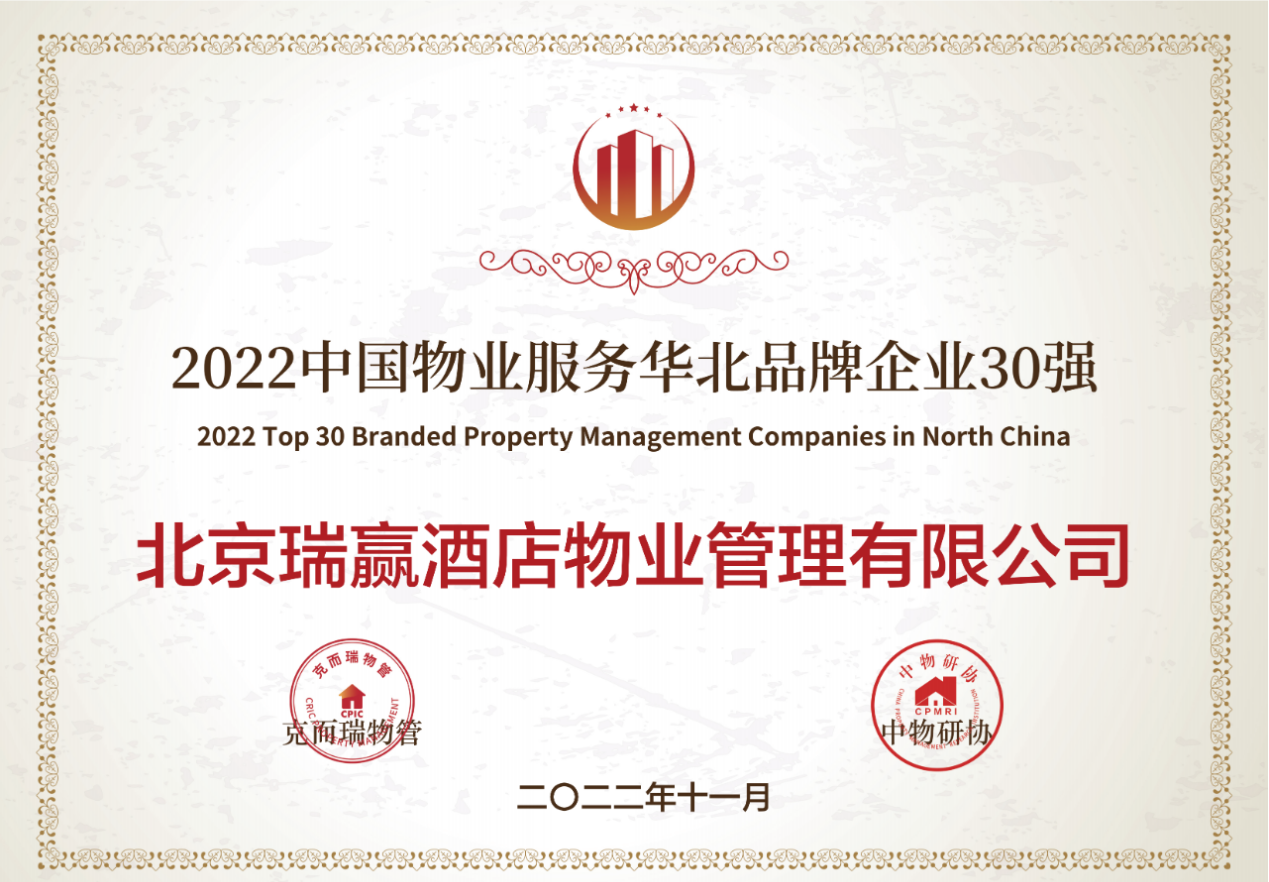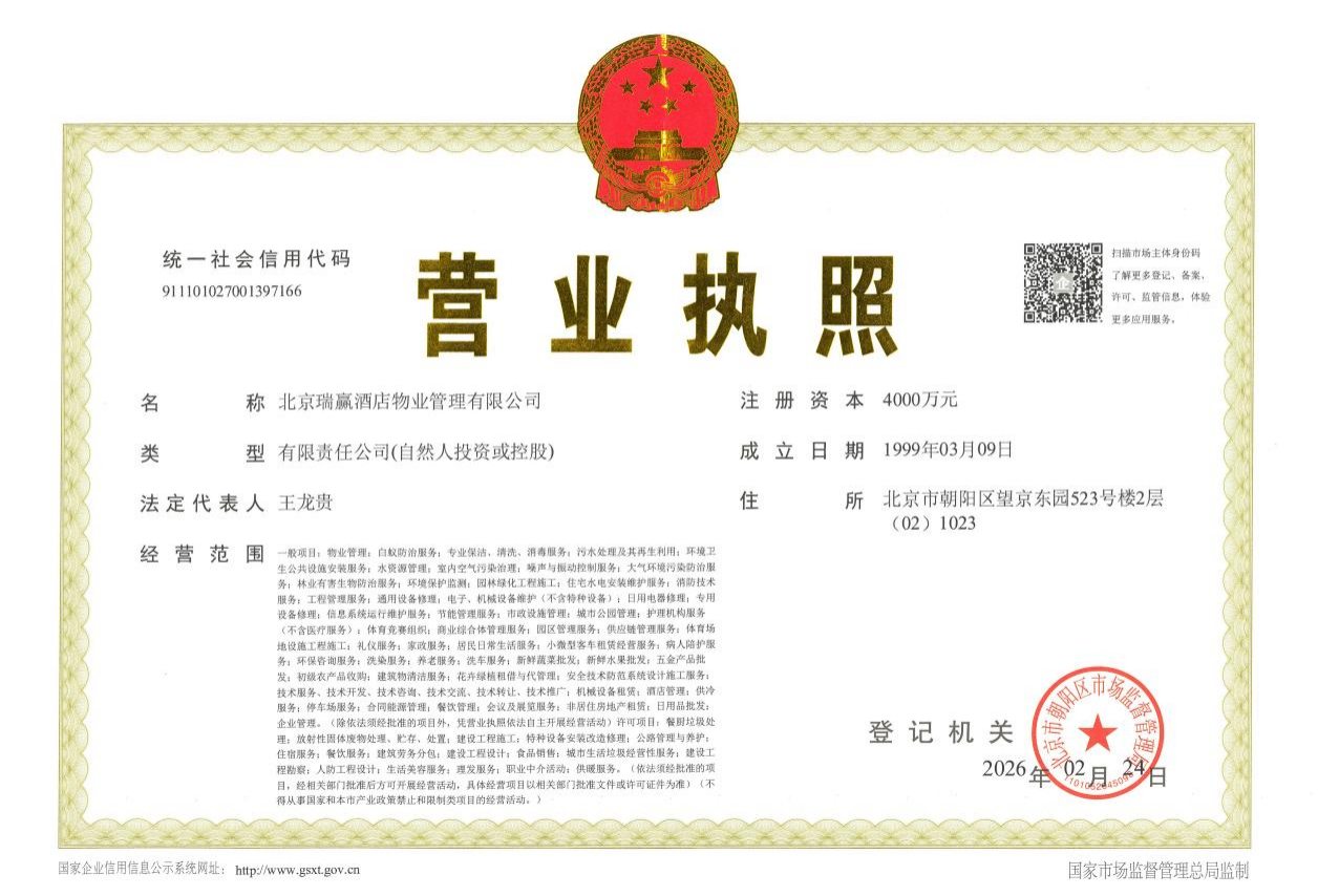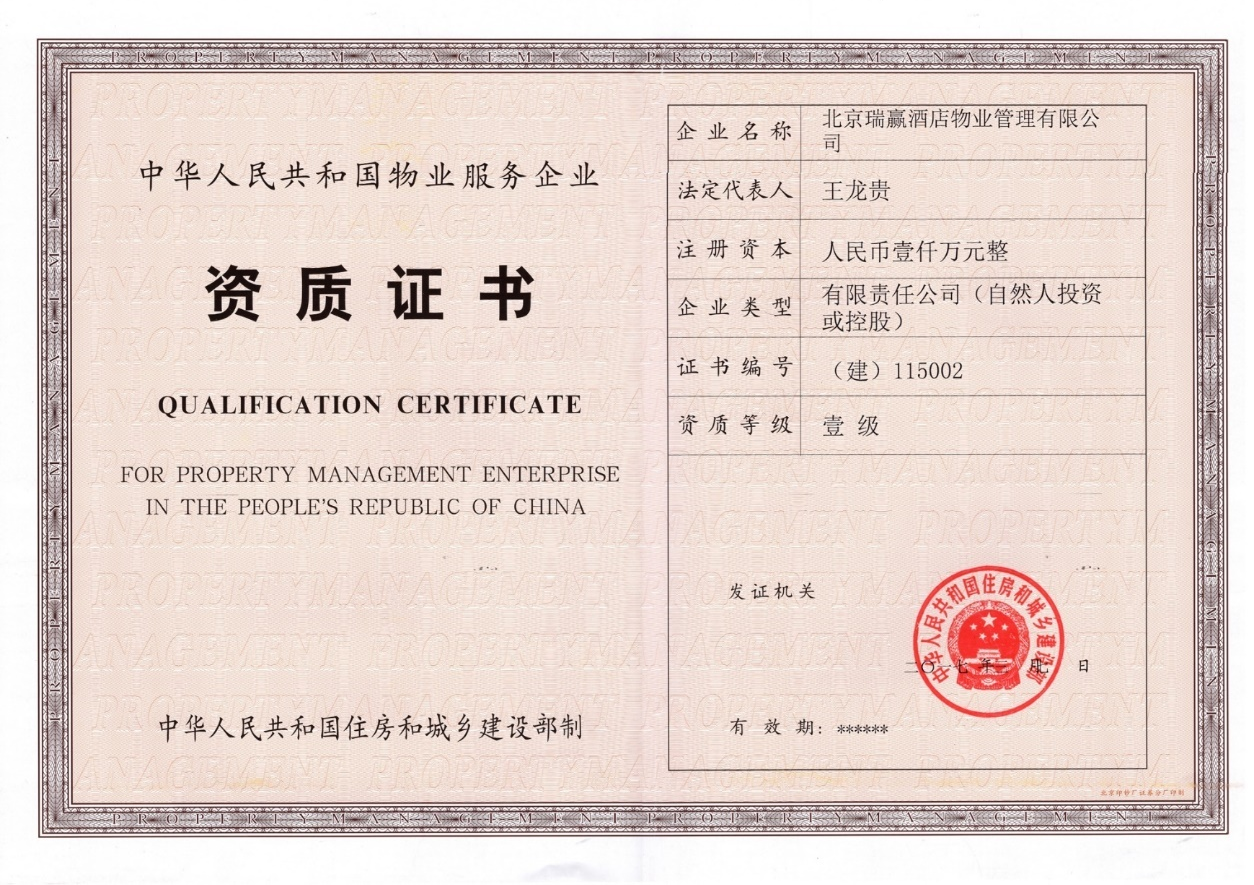 北京瑞赢酒店物业管理有限公司以下简称“瑞赢物业”,瑞赢物业自1999年3月9日成立,是具有国家壹级资质的物业服务企业。