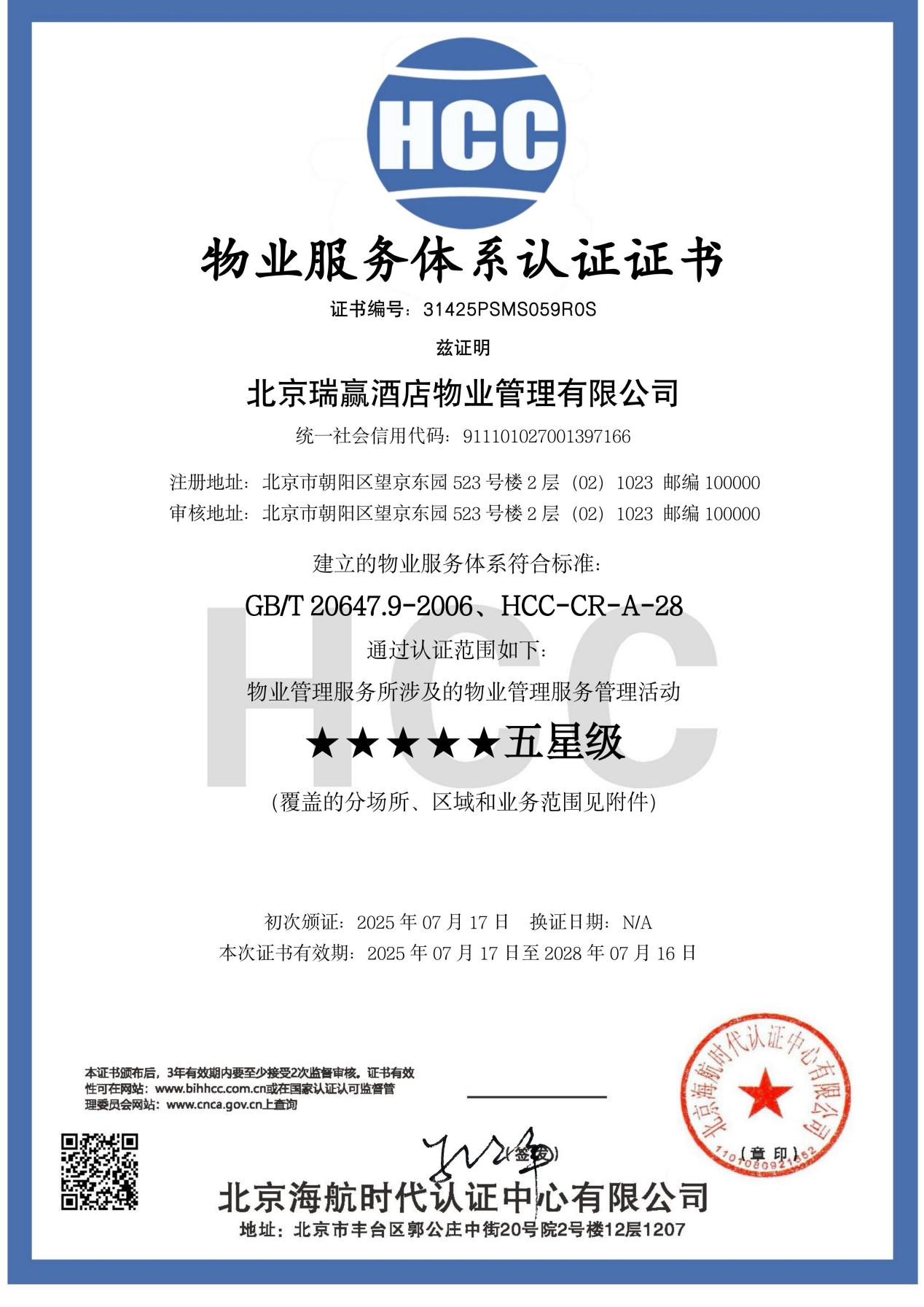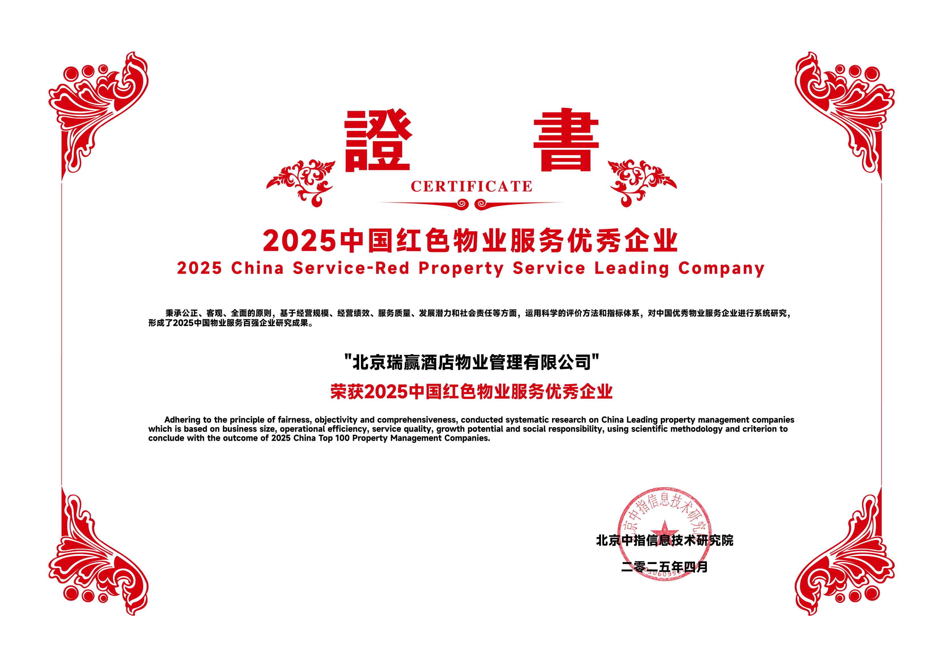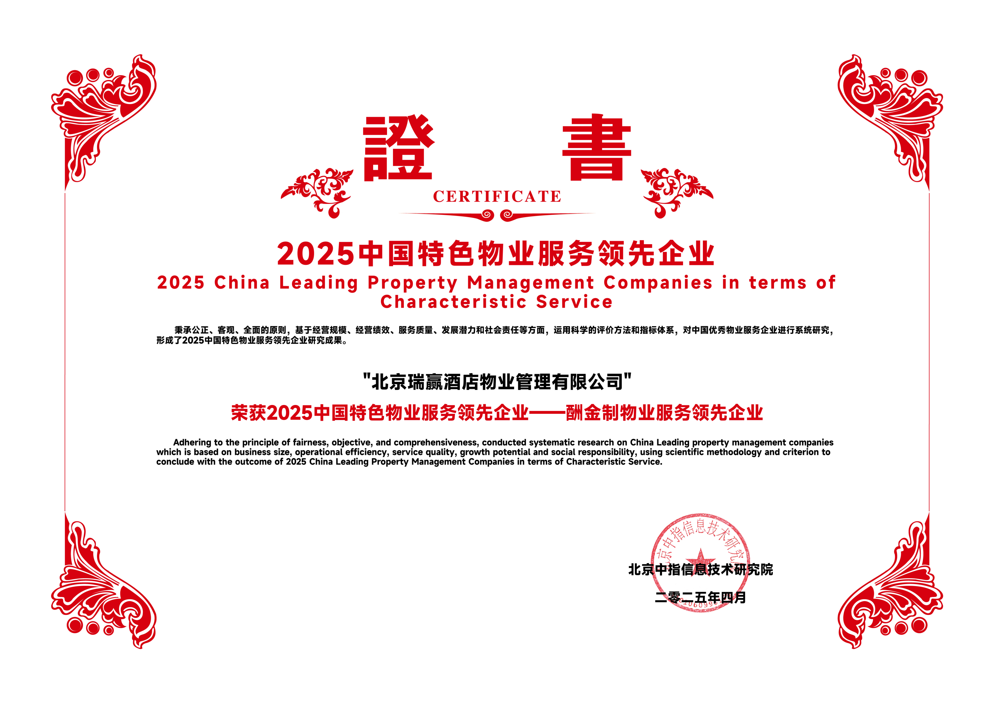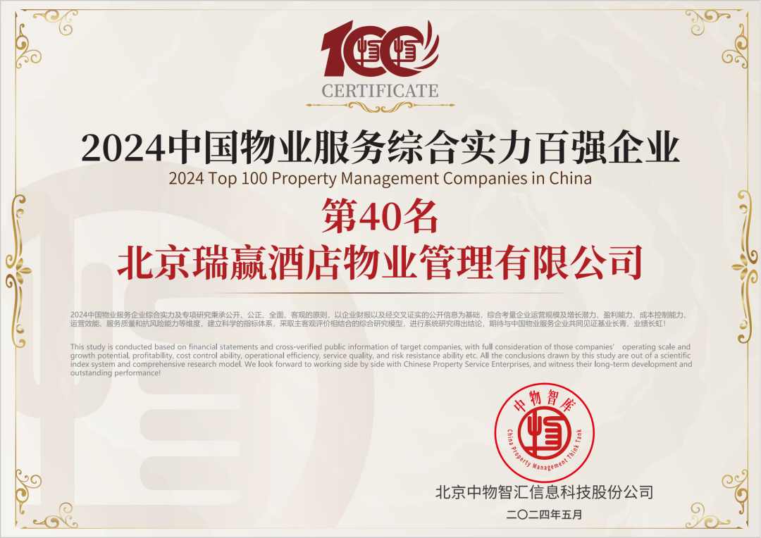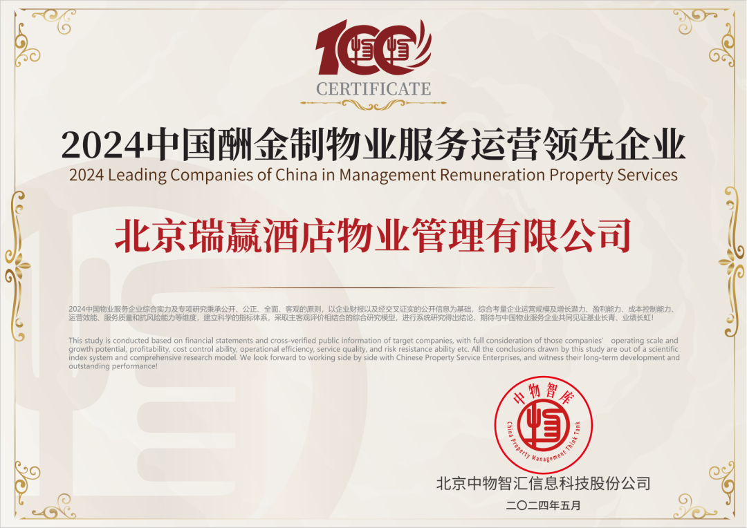 北京瑞赢酒店物业管理有限公司以下简称“瑞赢物业”,瑞赢物业自1999年3月9日成立,是具有国家壹级资质的物业服务企业。