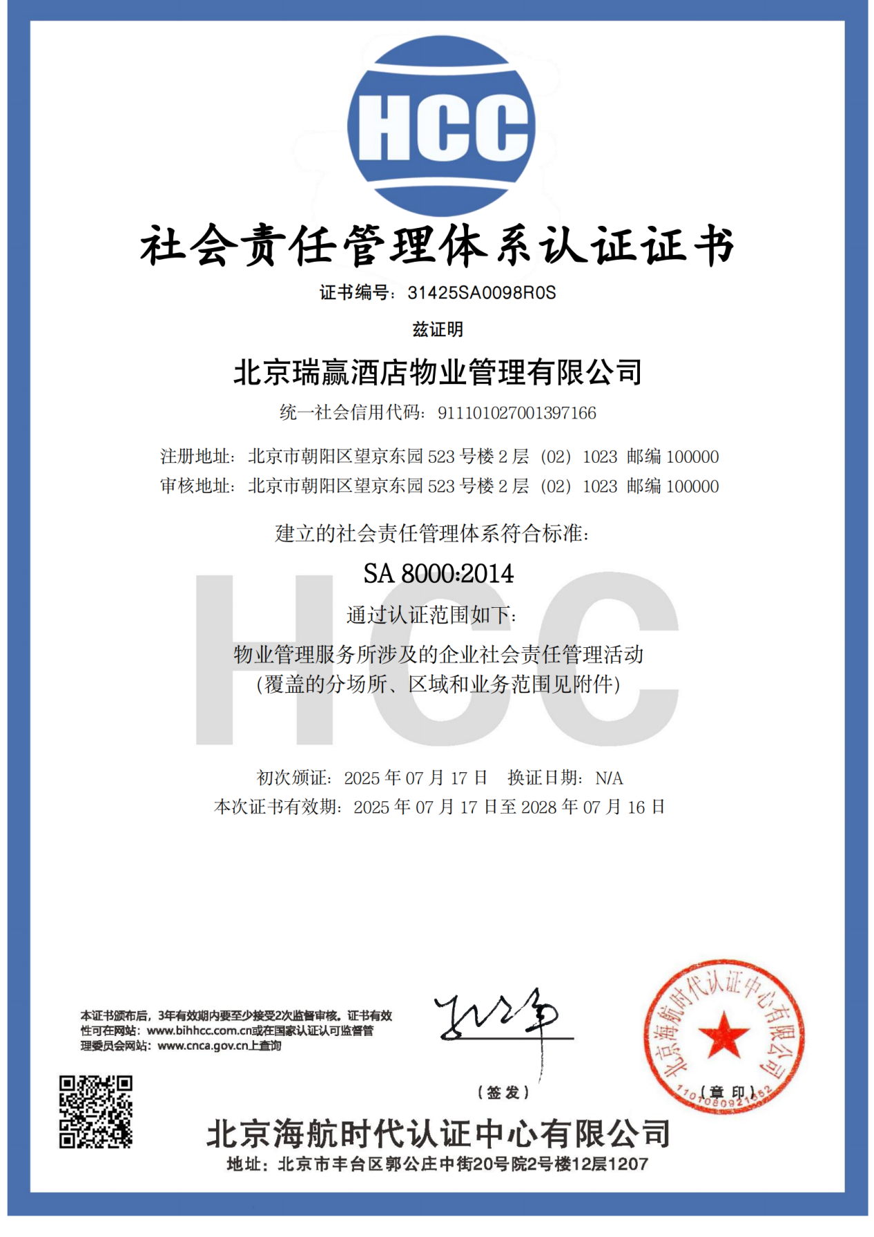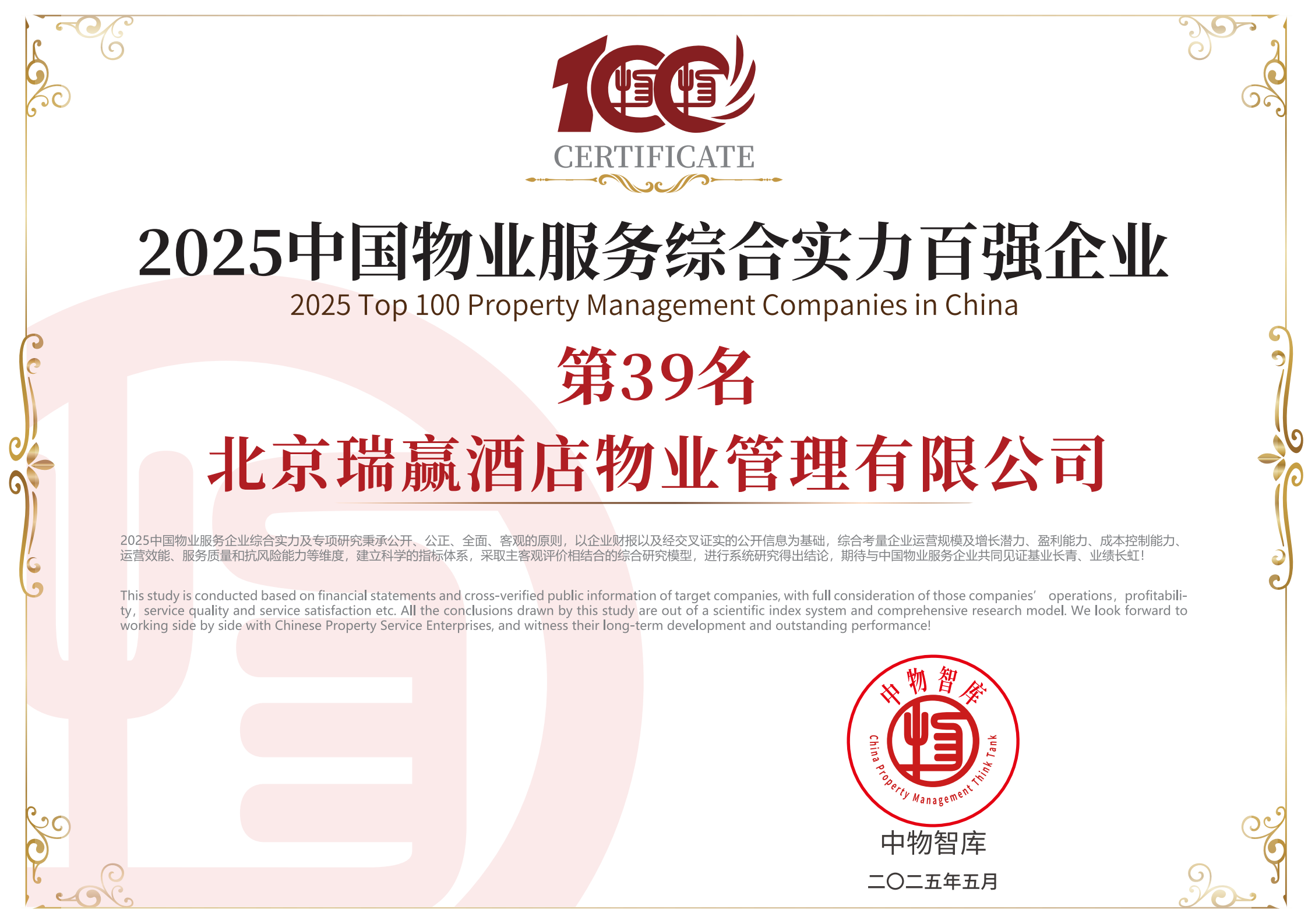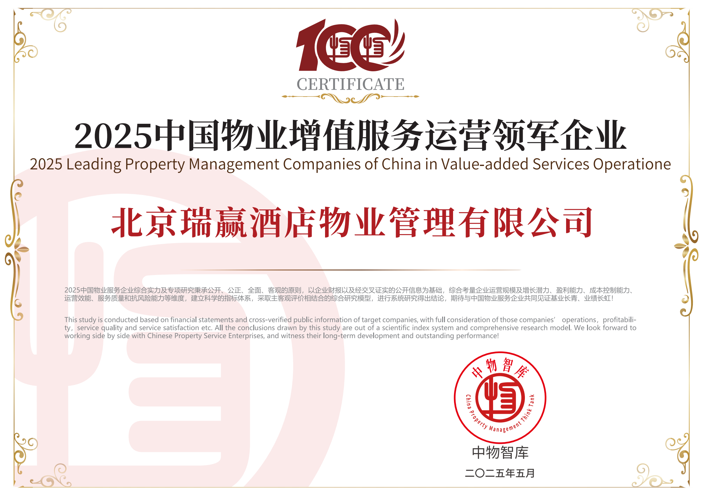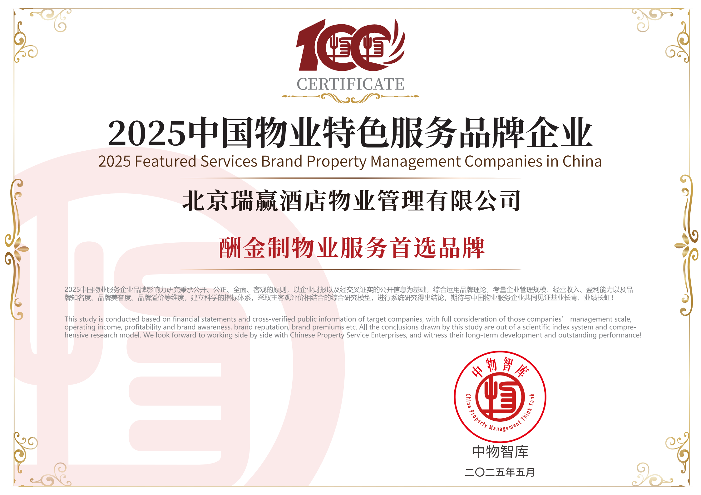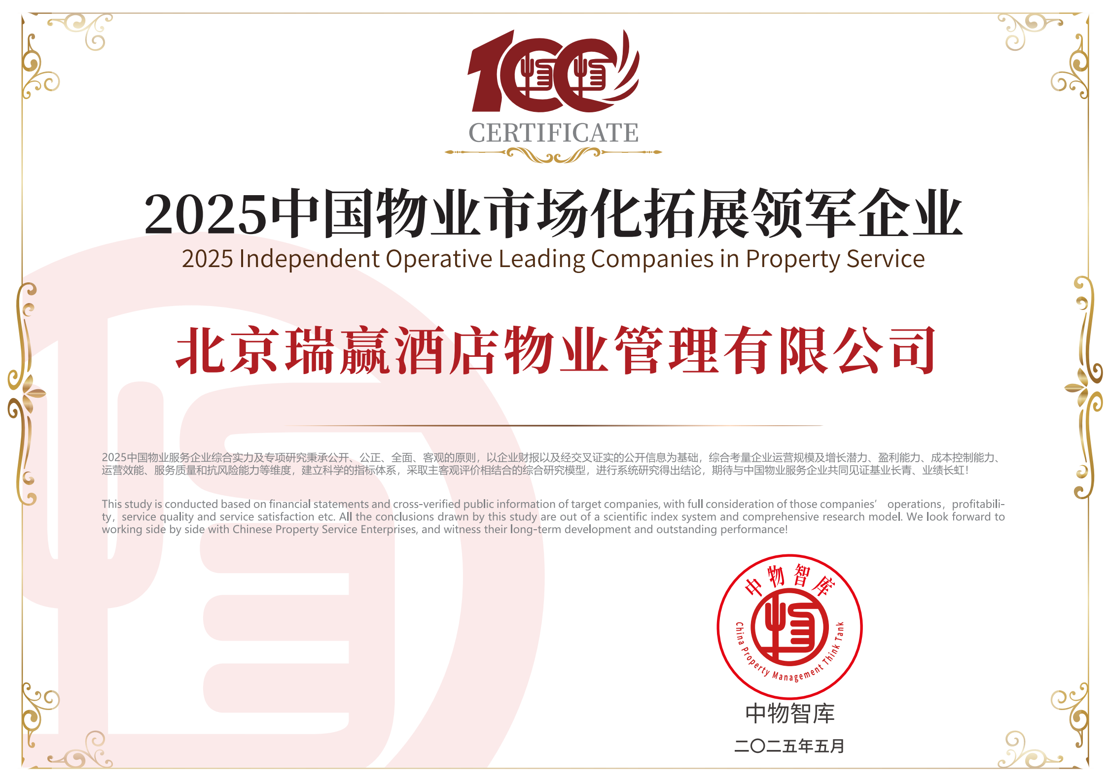 北京瑞赢酒店物业管理有限公司以下简称“瑞赢物业”,瑞赢物业自1999年3月9日成立,是具有国家壹级资质的物业服务企业。