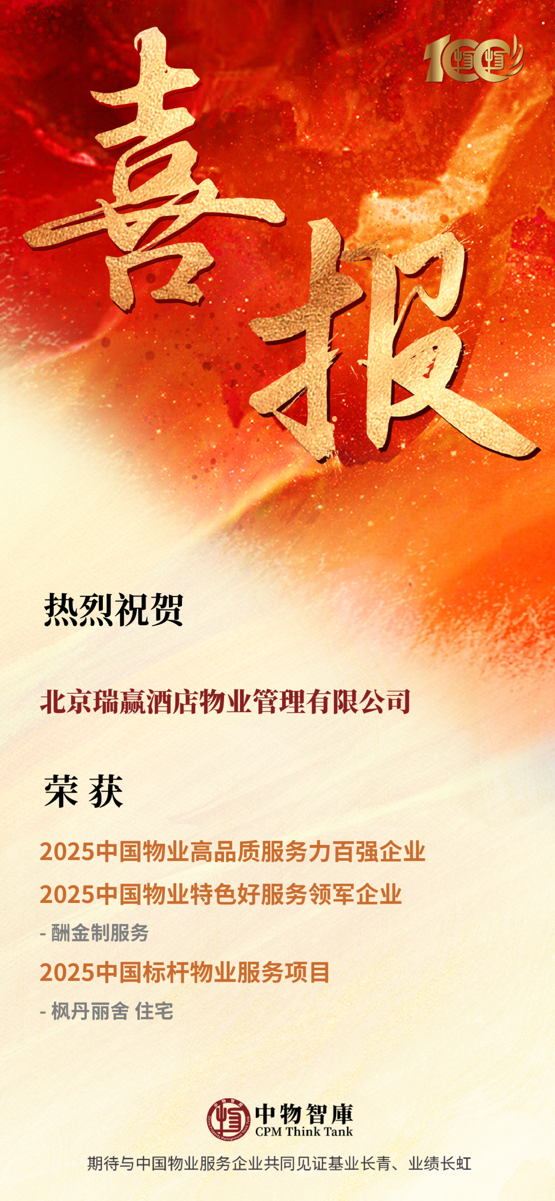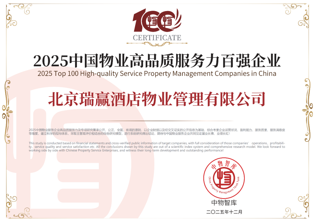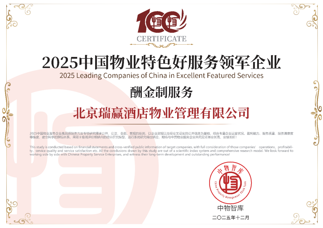 北京瑞赢酒店物业管理有限公司凭借卓越的服务品质、创新的服务模式与突出的项目管理能力,脱颖而出,一举斩获三项大奖: